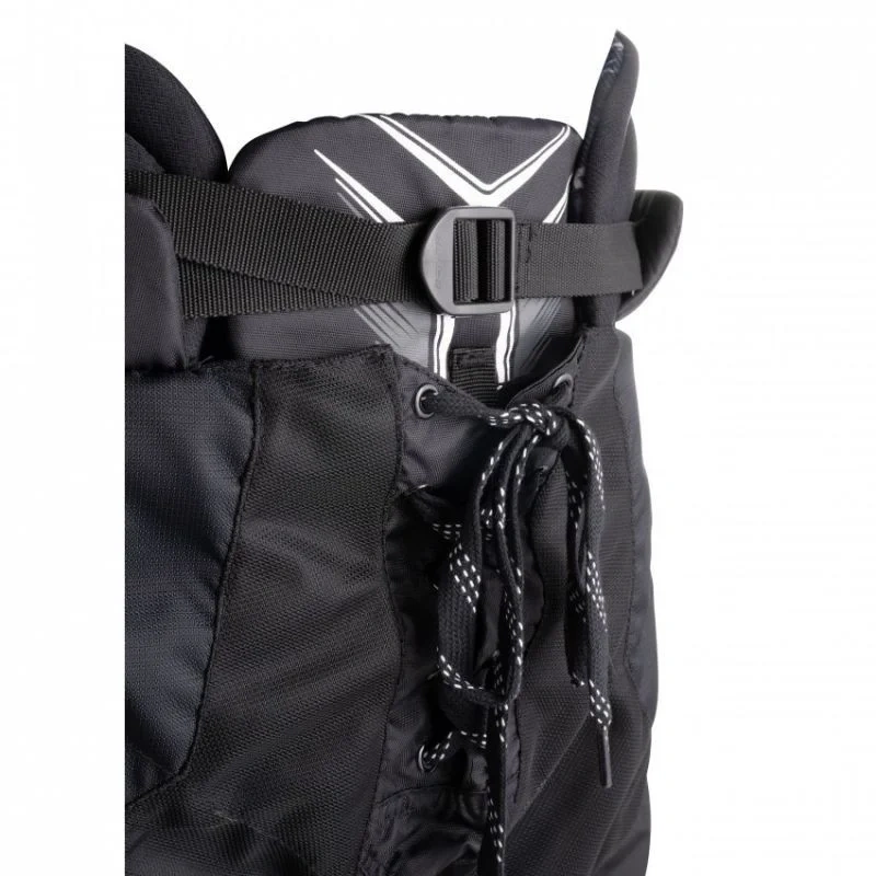 Główne cechy: Zintegrowany ochraniacz kręgosłupa: Wyposażony w wtryskiwaną płytkę, co zapewnia doskonałą ochronę w kluczowych obszarach pleców. Formowany polietylen i pianka o średniej gęstości: Zapewniają skuteczną ochronę przed uderzeniami, jednocześnie nie ograniczając ruchów. Materiał Nylon 400 D: Wytrzymałe i odporne na przetarcia, zapewniają długotrwałą ochronę i trwałość. Sznurowadła w pasie: Pozwala na idealne dopasowanie i dodatkowy komfort podczas gry.