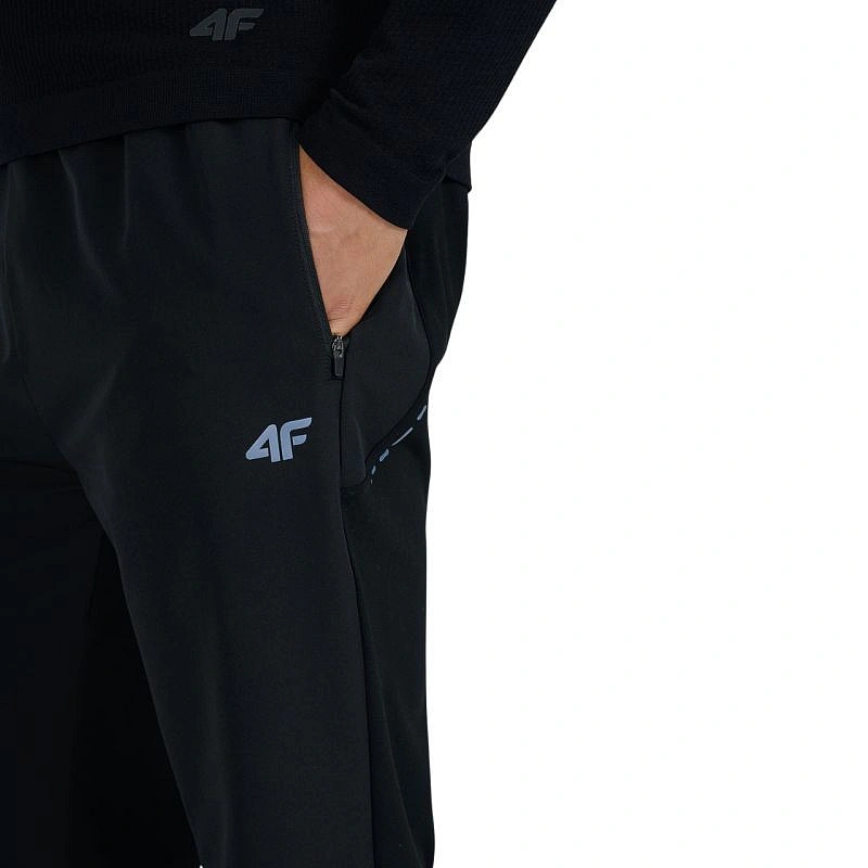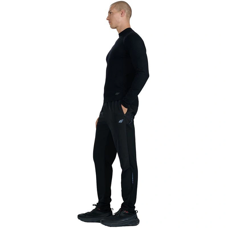 Spodnie męskie 4F FNK M0930 głęboka czerń 4FWAW25TFTRM0930 20S Męskie spodnie do biegania w terenie 4F. Dane techniczne:· Materiał główny: 92% poliester, 8% elastan· Materiał główny 2: 75% poliamid, 25% elastan· Materiał dodatkowy: 100% poliester· Regularny krój - komfortowe dopasowanie bez nadmiernego opinania· Nogawki bez ściągacza i regulacji – swoboda ruchów i klasyczny wygląd· Syntetyczny materiał - trwały i łatwy w pielęgnacji· Dodatek elastanu - zapewnia elastyczność i wygodę użytkowania· Jednolita kolorystyka - uniwersalna baza do różnych stylizacji· Wnętrze bez podszycia - lżejsza konstrukcja dla większego komfortu· 2 otwarte kieszenie boczne - szybki dostęp do drobiazgów· 2 kieszenie boczne na zamek - bezpieczne przechowywanie· Pas z regulacją na troki - indywidualne dopasowanie do talii· Odblaski - zwiększają widoczność w warunkach słabego oświetlenia· Technologia 4FDry - szybkie odprowadzanie wilgoci dla uczucia suchości· Powłoka Bionic Finish Eco – hydrofobowa impregnacja wolna od PFC