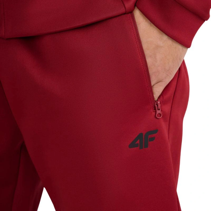Spodnie męskie 4F FNK M0936 ciemna czerwień 4FWAW25TFTRM0936 61S Spodnie męskie 4F sprawdzą się podczas treningów. Dane techniczne:· Materiał główny: 95% poliester, 5% elastan· Materiał dodatkowy: 100% poliester· Standardowy krój - klasyczne dopasowanie zapewnia komfort i swobodę ruchów· Materiał syntetyczny - trwałość i łatwość pielęgnacji, idealny do intensywnego użytkowania· Rozciągliwa tkanina z dodatkiem elastanu - zwiększona elastyczność i wygoda noszenia· Jednolita kolorystyka - podkreśla minimalistyczny styl i uniwersalny charakter modelu· 2 kieszenie boczne z zamkiem - bezpieczne przechowywanie drobiazgów podczas aktywności· Pas z wewnętrzną regulacją na troki - indywidualne dopasowanie w talii· Technologia 4FDry - szybkoschnące włókna skutecznie odprowadzają wilgoć na zewnątrz