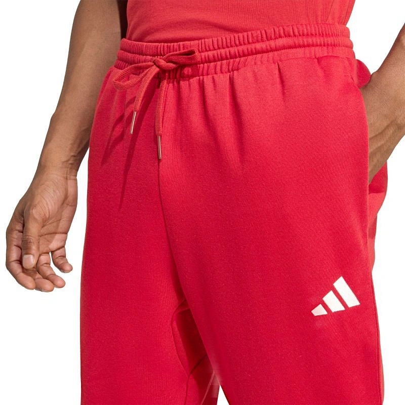 Spodnie męskie adidas Essentials Feelcozy czerwone KC0915 Spodnie męskie adidas sprawdzą się na co dzień. Standardowy krój ze zwężanymi nogawkami nie. Nogawki wykończono delikatnymi mankietami. Elastyczna talia z zewnętrznym sznurkiem do regulacji. Otwarte kieszenie boczne. Miękki materiał. Średnio zabudowana talia. Wewnętrzne ocieplenie. Materiał: 70% bawełna, 30% poliester pochodzący z recyklingu