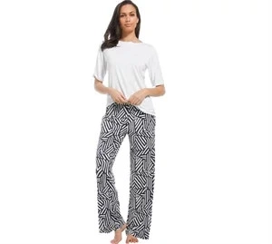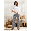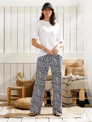 Spodnie plażowe Pastunette z kieszeniami - eleganckie granatowe spodnie wizytowe, wieczorowe lub plażowe z białym nadrukiem graficznym.być może znasz miękkie właściwości bambusa?wiskoza ma dokładnie takie same właściwości.fantastyczny komfort i miękkość, które są przyjemne dla ciała, z fantastyczną regulacją temperatury i właściwościami odprowadzania potu.miękki dżersej wykonany z włókien roślinnych i drzewnych