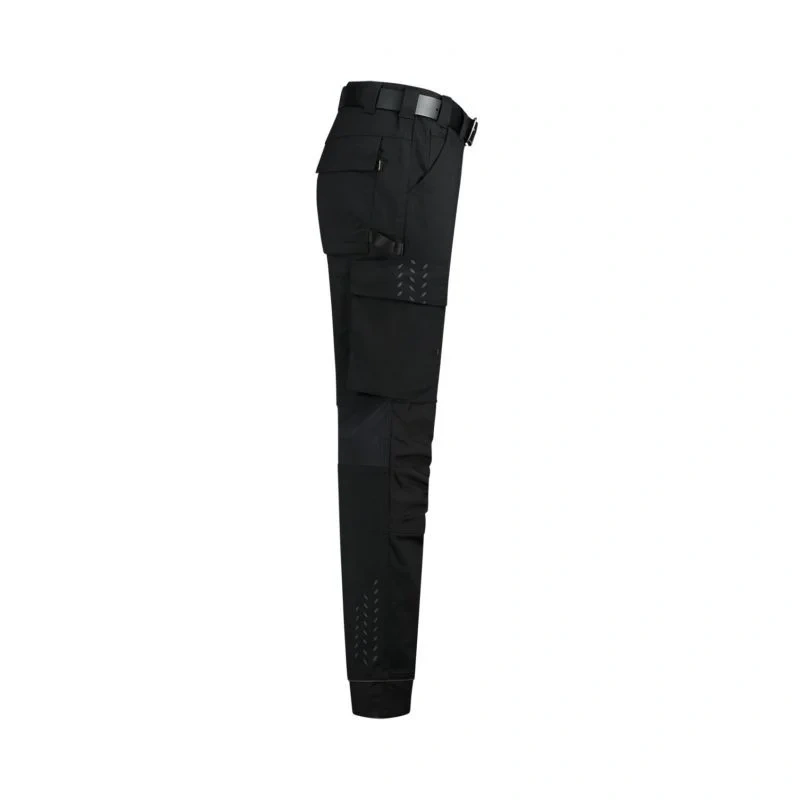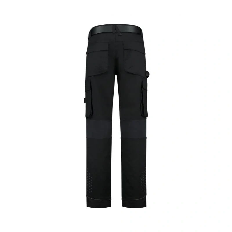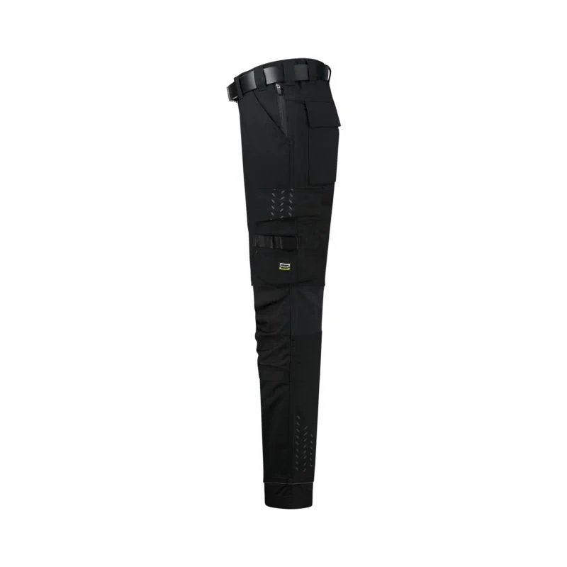 spodnie unisex elastyczne w pasie, wielofunkcyjnych kieszeni, zawieszka "D" , elementy odblaskowe, CORDURA® w części kolanowej, możliwość wydłużenia nogawek, pasuje do nakolanników T90, rozmiary 45, 47, 49, 51, 53, 55 są przedłużone, pasek nie jest częścią zestawu, Tricorp kod produktu: 502020
