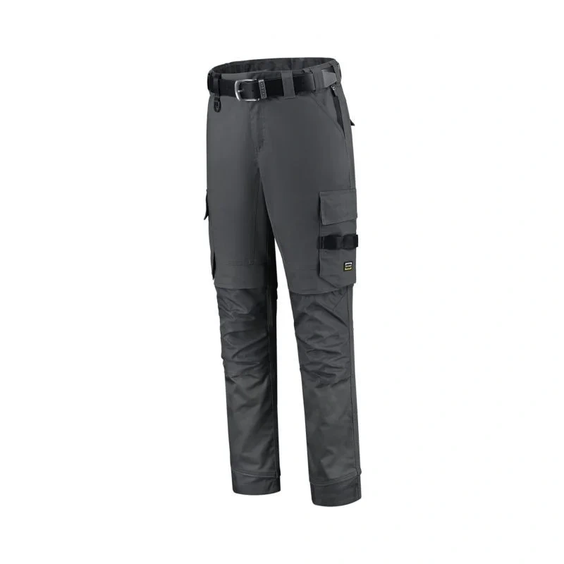 spodnie unisex elastyczne w pasie, wielofunkcyjnych kieszeni, zawieszka "D" , elementy odblaskowe, CORDURA® w części kolanowej, możliwość wydłużenia nogawek, pasuje do nakolanników T90, rozmiary 45, 47, 49, 51, 53, 55 są przedłużone, pasek nie jest częścią zestawu, Tricorp kod produktu: 502020