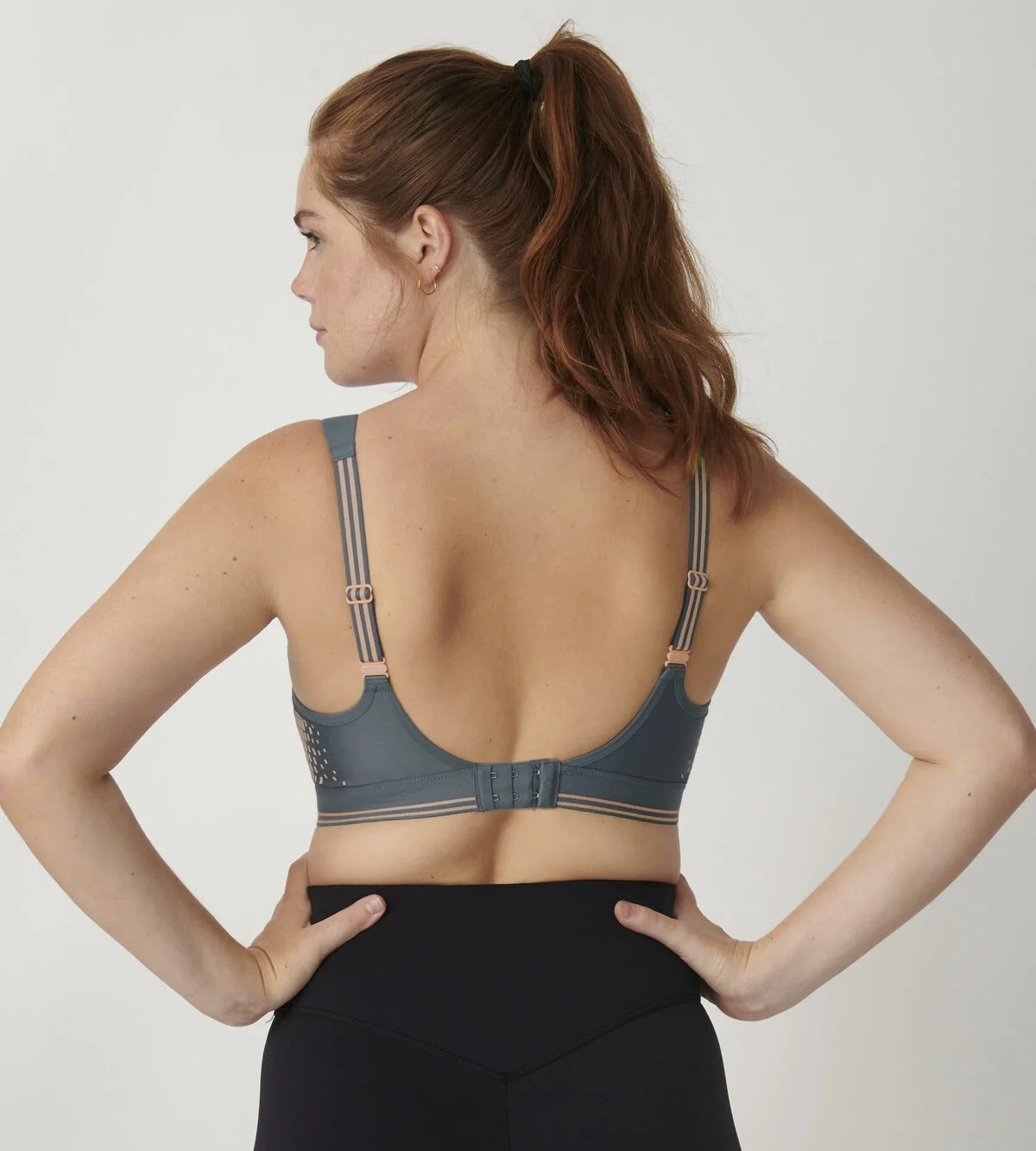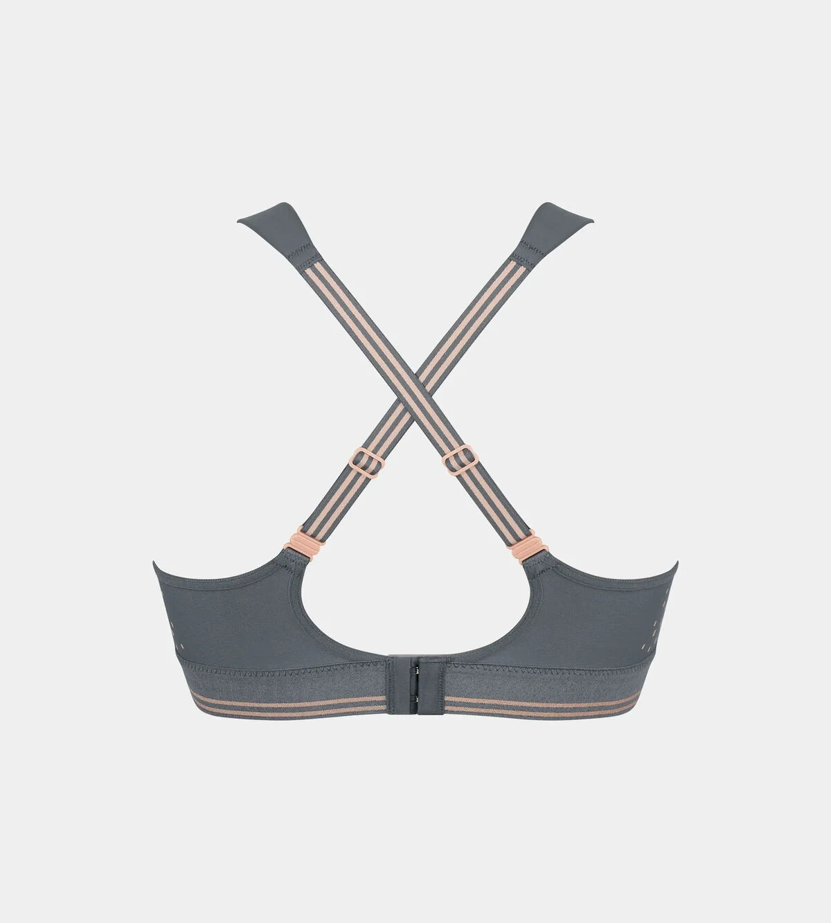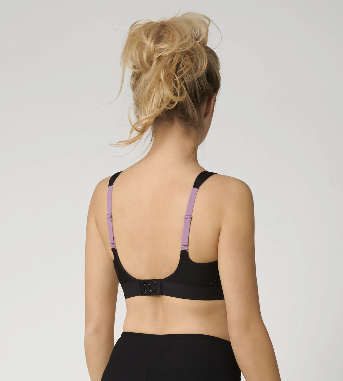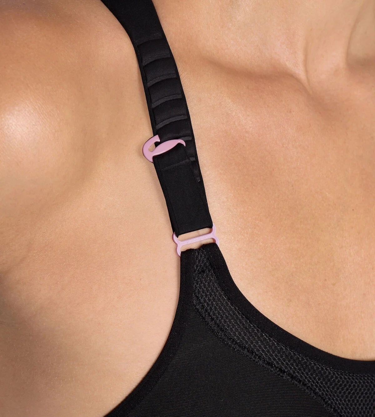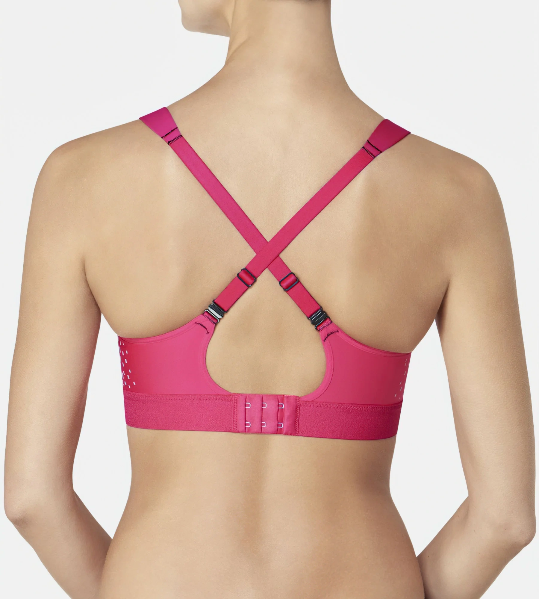 Nastavitelná vypodložená ramínka s praktickým zapínáním na patenty lze nosit i překřížená