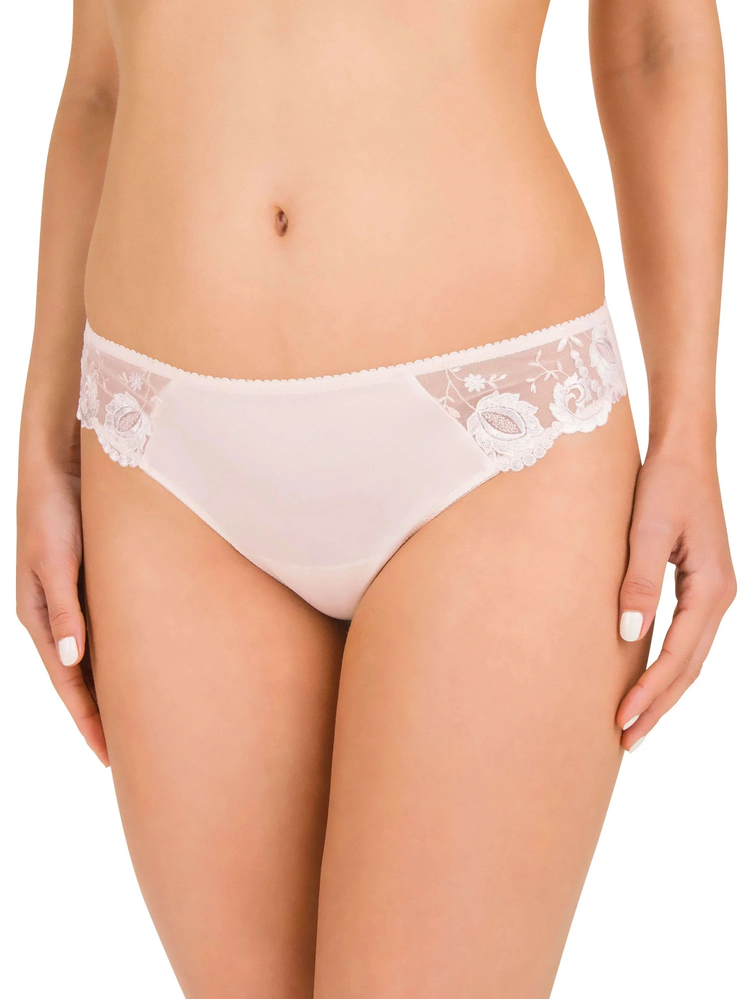 Majtki Wish 12B630 - pudrowy - Simone Péréle. Luksusowe koronkowe figi, ozdobione gipiurowym haftem.
