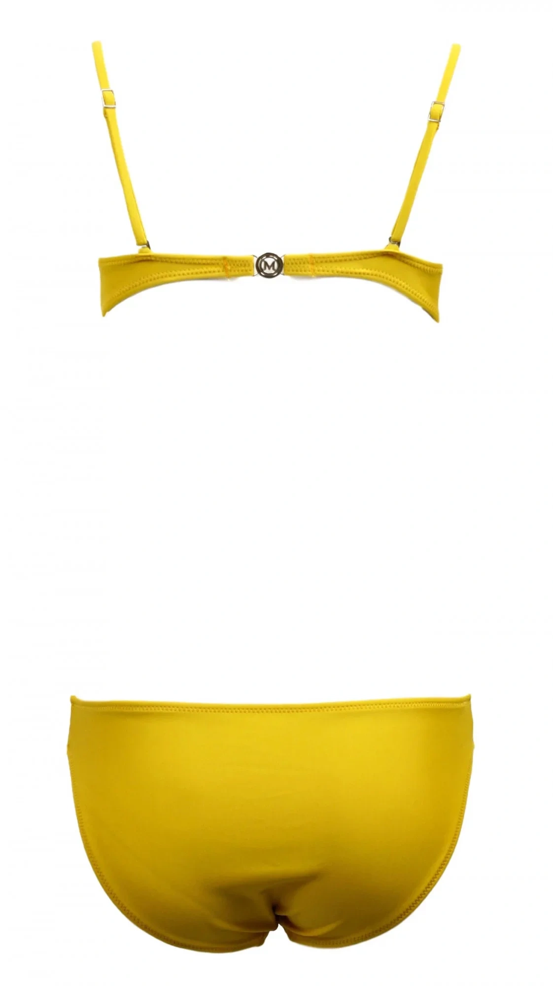 Dwuczęściowy kostium kąpielowy z włoskiego materiału Carvico Tessuti. Biustonosz bez push-up, z fisz