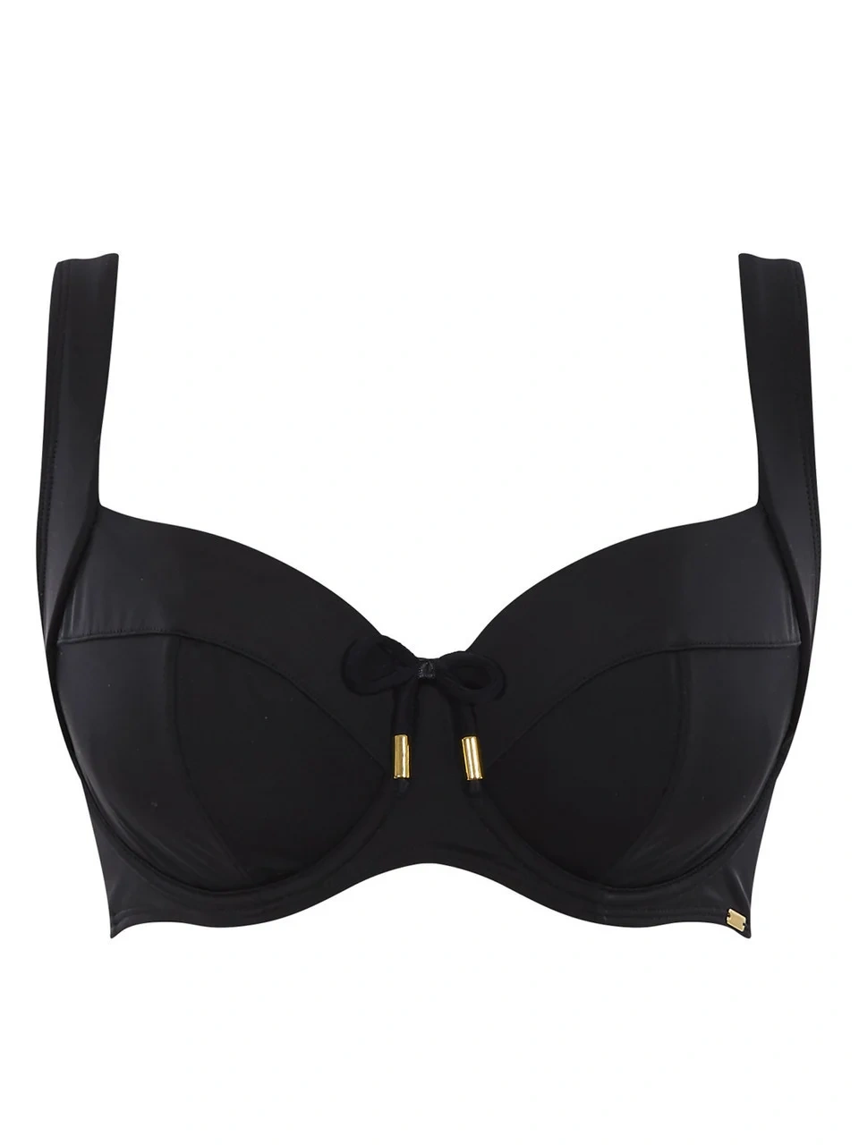 Nasza kolekcja Anya Riva to wszechstronny zestaw strojów od Panache Swim. Jeśli szukasz kostiumu kąpielowego, który zapewnia maksymalne wsparcie, bikini Anya Riva Full Cup jest właśnie dla Ciebie. Jest nowoczesny, efektowny i ponadczasowy - ma podtrzymujące, niewyściełane miseczki, które niesamowicie podnoszą sylwetkę i podkreślają kształt.Biustonosz na fiszbinach3-częściowe, nieusztywniane miseczki (podwójnie wyściełane) dla niesamowitego wsparciaRozmiary G-K mają zapiekane skrzydełka dla dodatkowego wsparcia i kształtuMiseczki wyściełane poliestrową siateczką zapewniają wsparcie i wygodne dopasowanieRamiączka regulowaneWykończone złotą lamówką dla dodatkowego luksusu