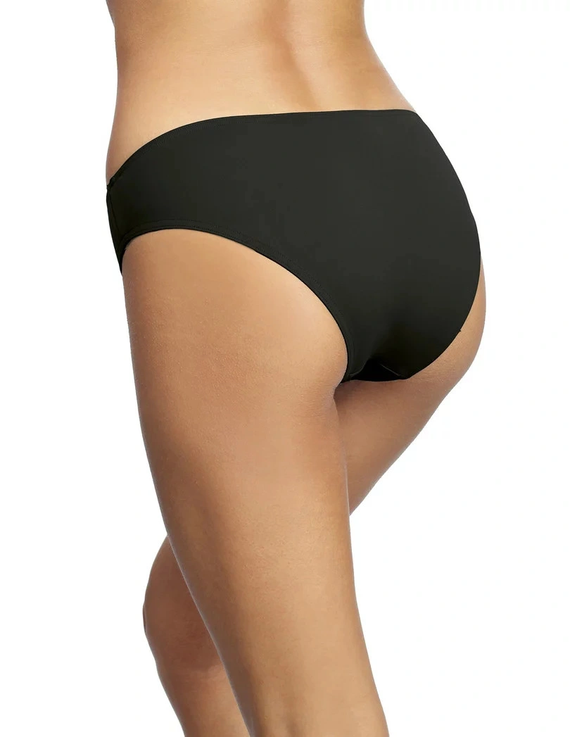 Figi damskie od kostiumu kąpielowego Anita. Klasyczny krój. Z przodu naszyty kolorowy pasek z czarno