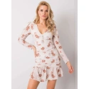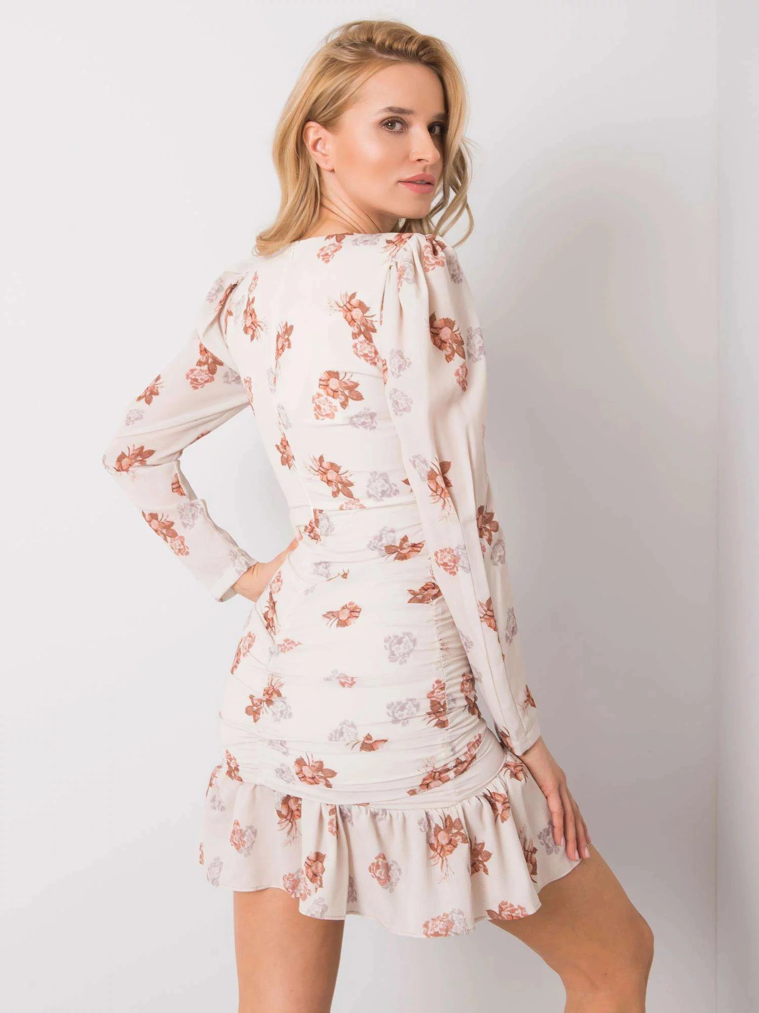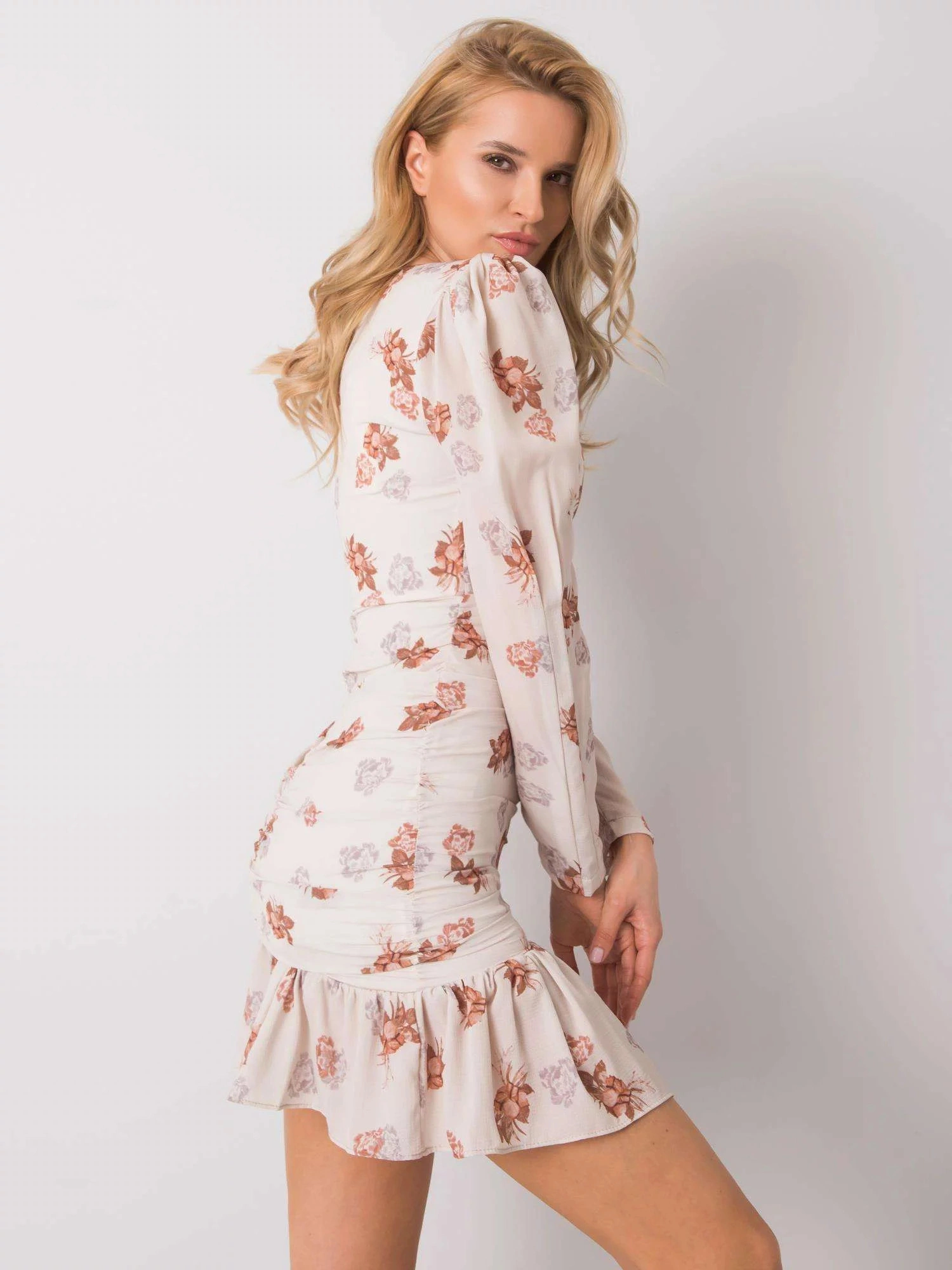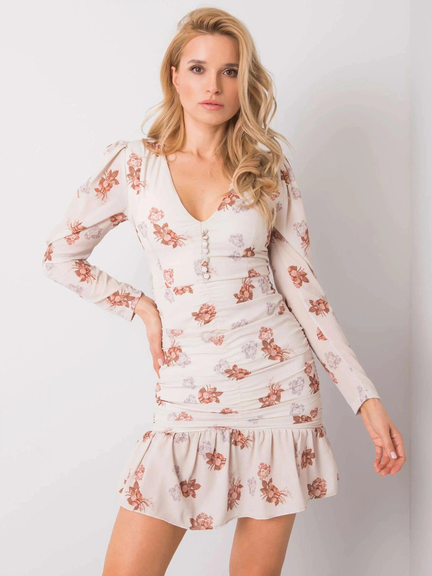 RUE PARIS Beżowa sukienka w kwiatowy print.