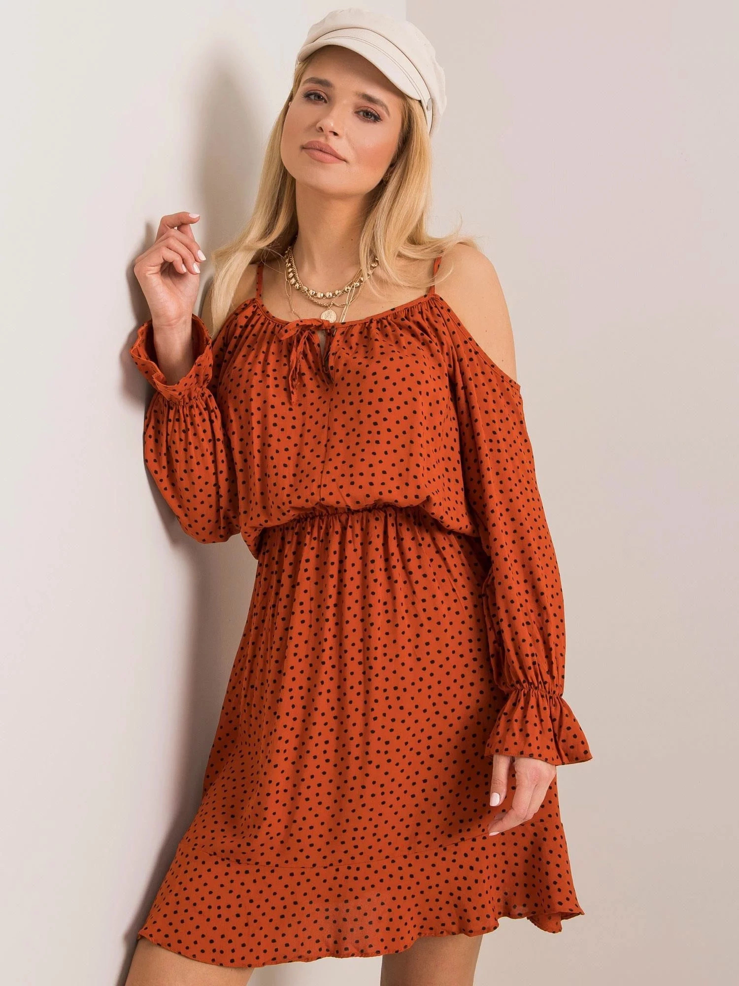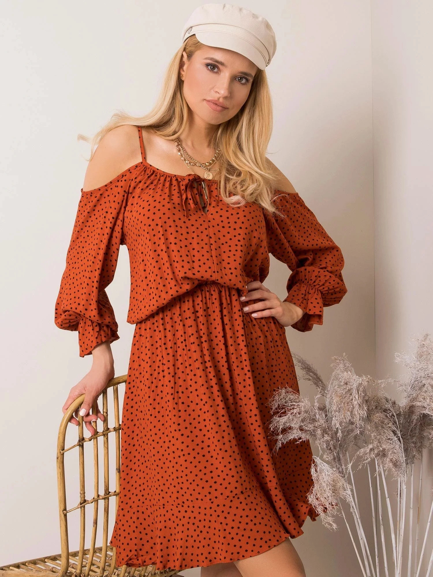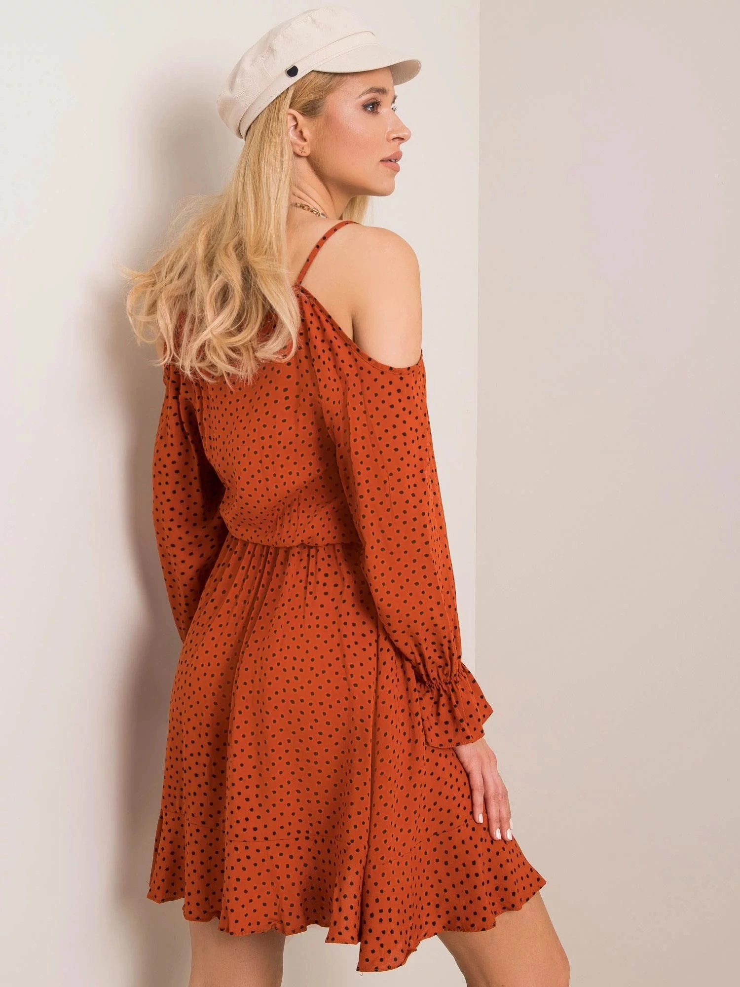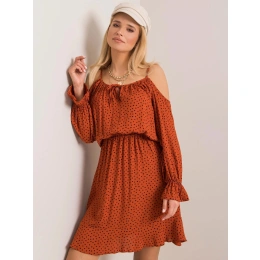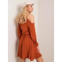 RUE PARIS Brązowa sukienka z falbanką.