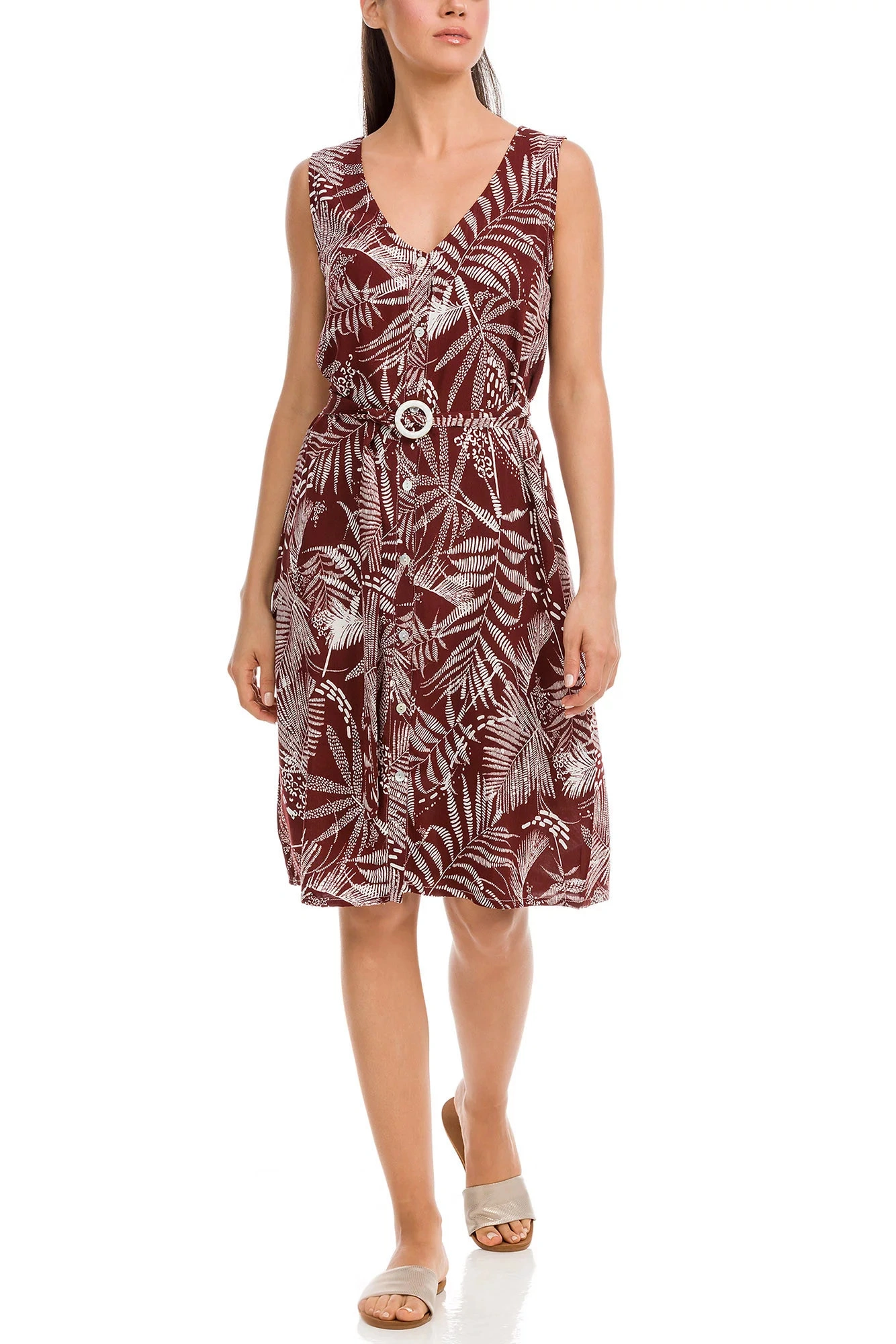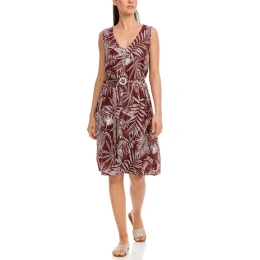 Piękna damska sukienka z nadrukiem liści palmowych w brązowo-białym połączeniu to symbol jakości, piękna i prostoty. Stylowa sukienka o długości poniżej kolan zapewni wygodę przez cały dzień. Są one wykonane z wysokiej jakości materiałów i zaprojektowane zgodnie z najnowszymi trendami.