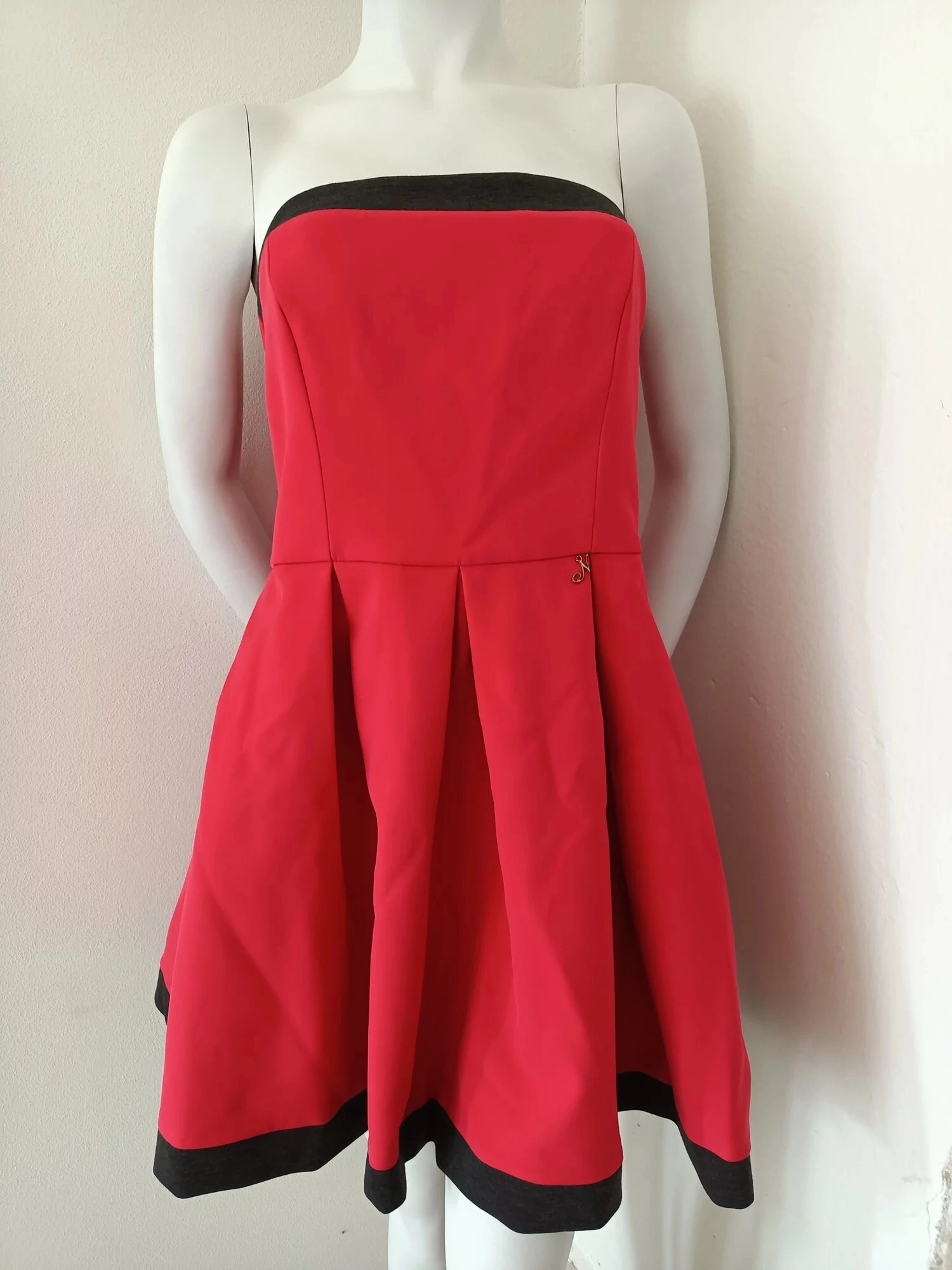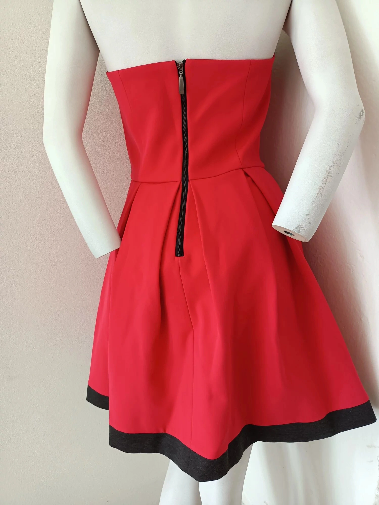 Damska sukienka wizytowa, bez rękawów, gorsetowa. Po bokach wszyte fiszbiny. Zapięcie na zamek błyskawiczny z tyłu.