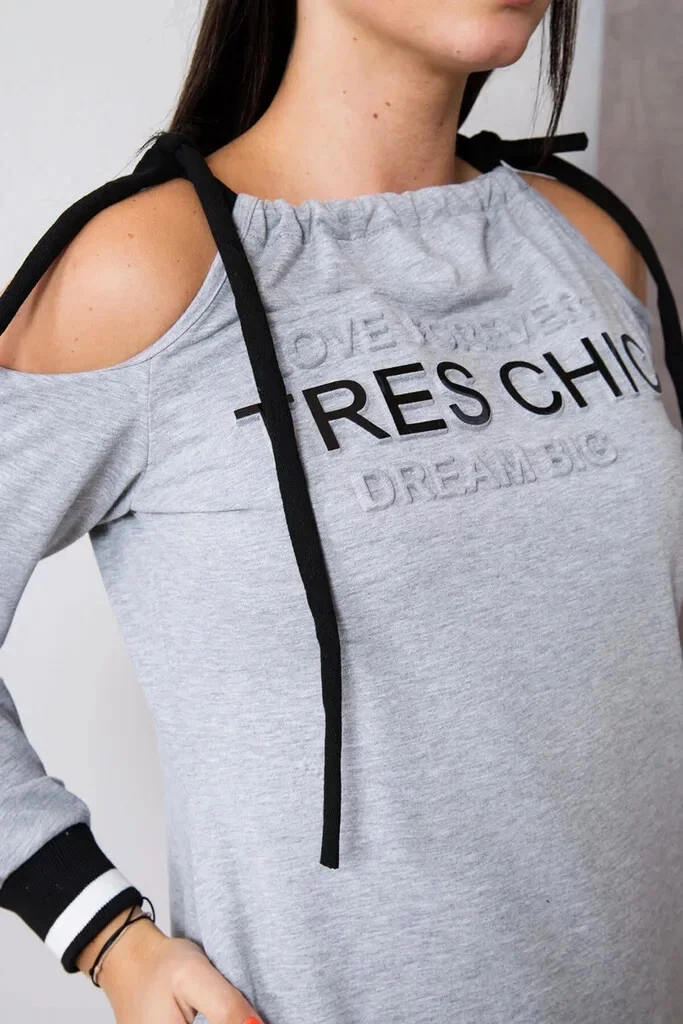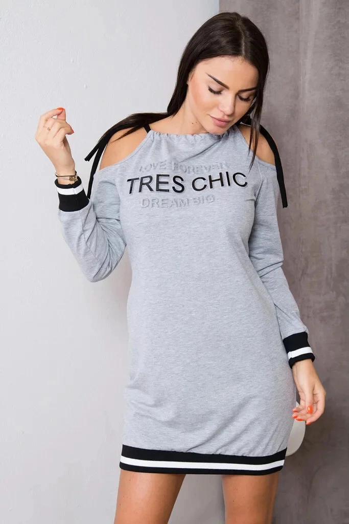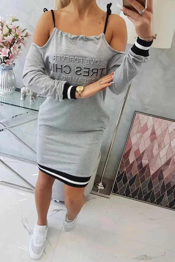 Damska swobodna sukienka z wytłoczonym napisem, odsłoniętymi ramionami i zapięciem na sznurek. Odpowiedni dla rozmiaru. S, M i L.
