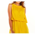 Hit lata w soczystych letnich kolorach. Sukienka o długości mini z miękkiej, przewiewnej i chłodnej wiskozy. Na ramiączkach z efektownym plisowanym dekoltem na gumce. Sukienka łatwo dopasowuje się do sylwetki, ponieważ jest wiązana w talii delikatnym paskiem wykonanym z tego samego materiału co sukienka. Świetnie wygląda z szpilkami i wygodnymi japonkami. Produkt wyprodukowany w Polsce.