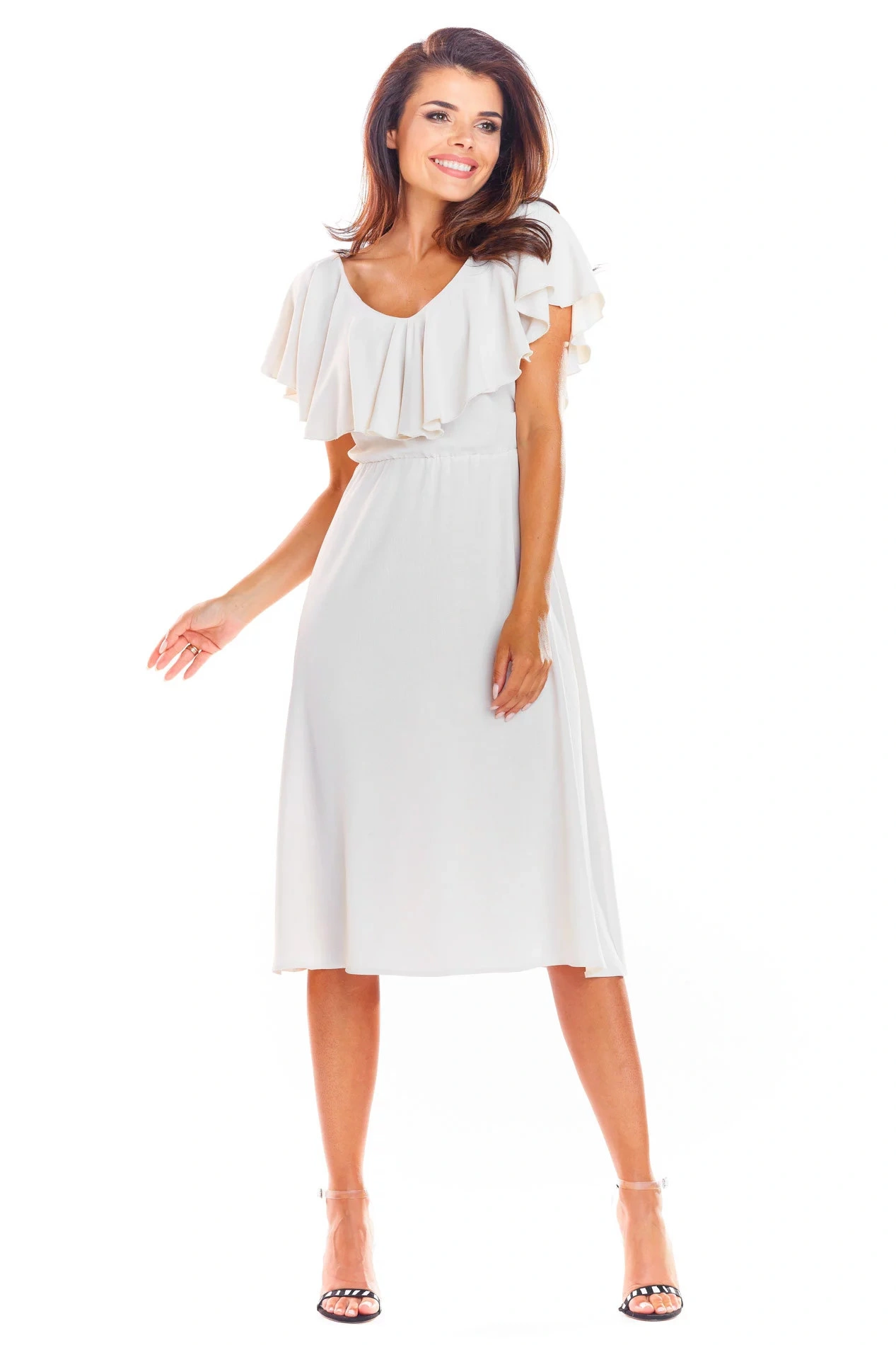 Sukienka damska 144-2 Sara Numoco o długości poniżej kolan - krótkie rękawy - dekolt w łódkę - małe