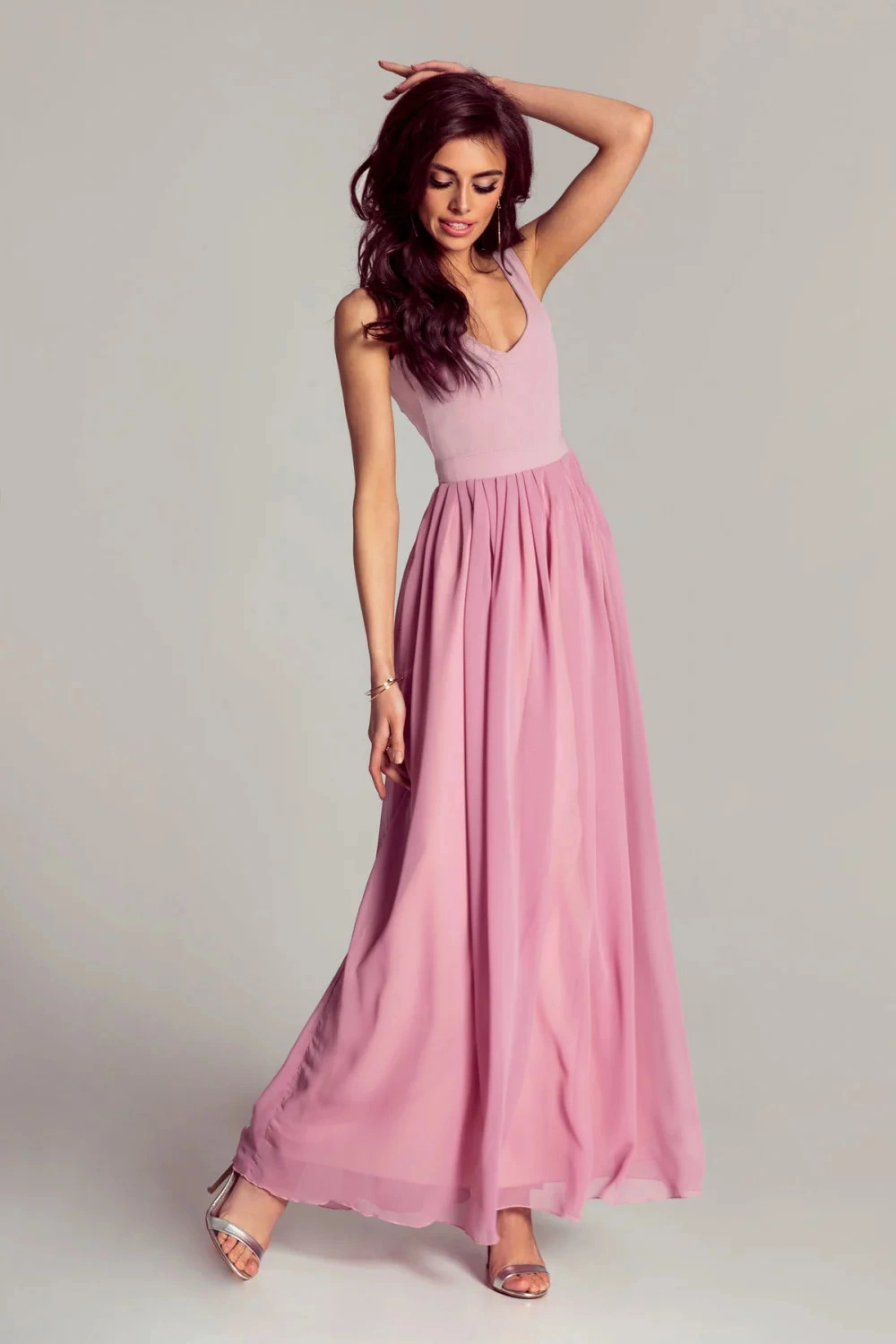 EVA&LOLA długa różowa sukienka wieczorowa bez rękawów dla kobiet Damska sukienka wieczorowa. Ten mod