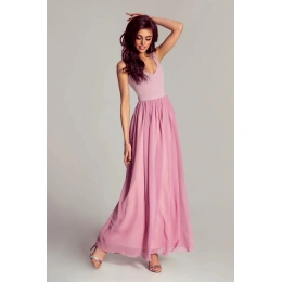 EVA&LOLA długa różowa sukienka wieczorowa bez rękawów dla kobiet - Różowy - EVA&LOLA