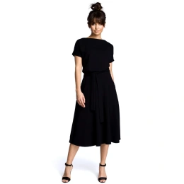 Dzięki ponadczasowemu krojowi sukienka ta jest absolutnym "must have". Całość dopełnia rozkloszowana spódnica do kolan i luźny top z wiązanym paskiem w talii.