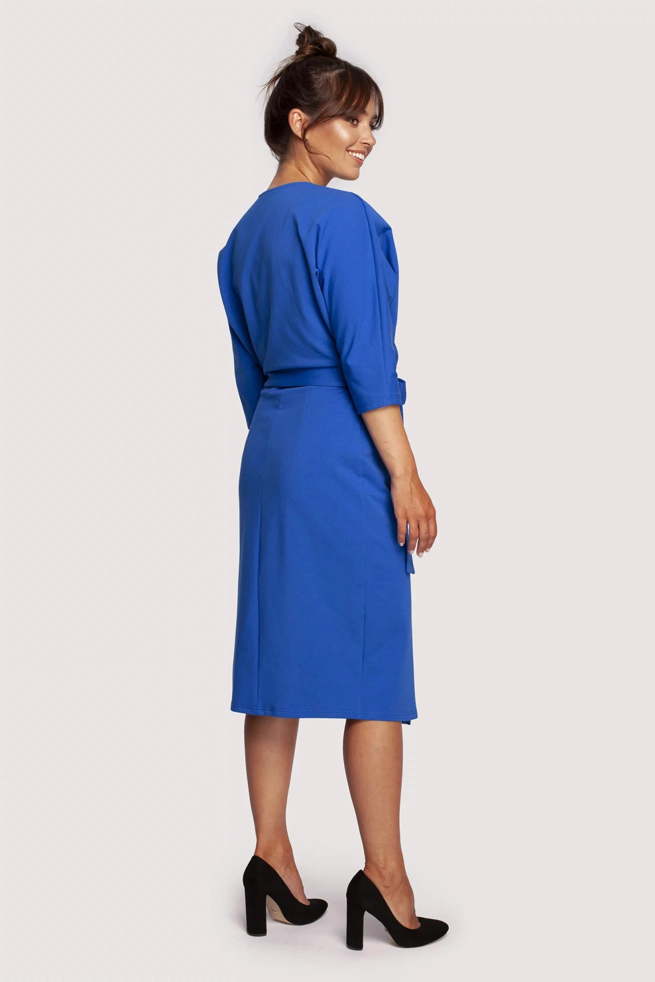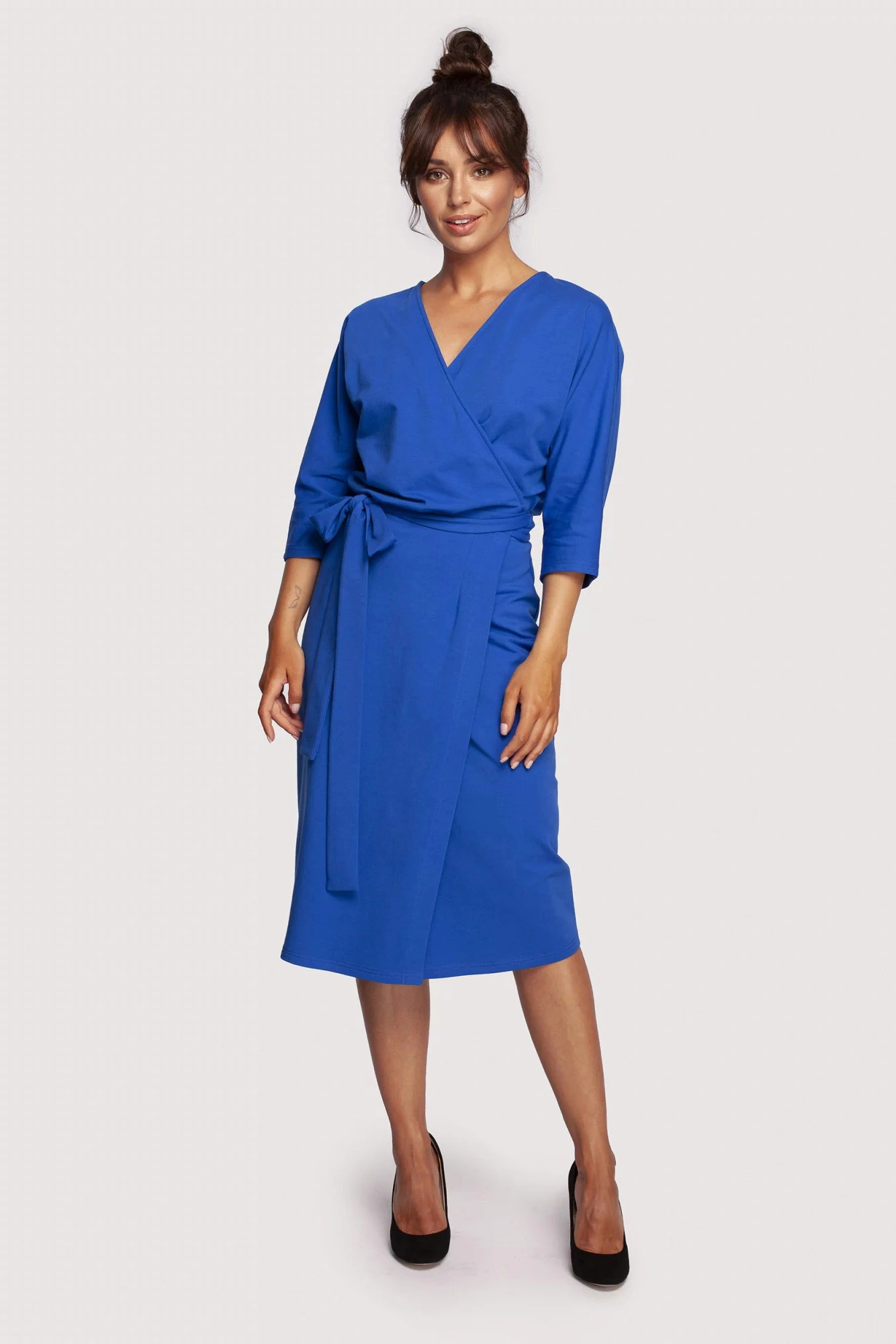 Kiedy elegancja łączy się z wygodą, powstaje idealna sukienka! Ta piękna sukienka jest wykonana z bawełnianej dzianiny i ma dopasowany krój z podkreślającymi figurę zakładkami w talii, niskim dekoltem i wiązaniem z boku.