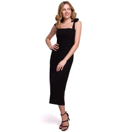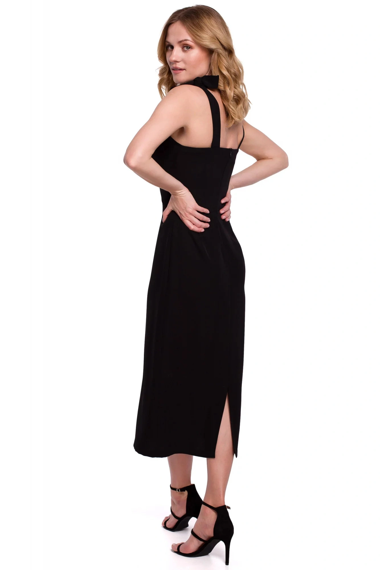 Sukienka midi z tkanego materiału na ramiączkach, z tyłu otwór wentylacyjny, bez podszewki, ukryty zamek błyskawiczny na plecach.