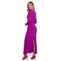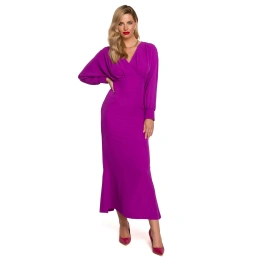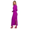 Urocze i wyjątkowe sukienki na specjalne okazje. Głęboki dekolt i obszerne rękawy zakończone mankietami z krytymi guzikami. Spódnica maxi z delikatnym warkoczem typu fishtail i przyciągającym wzrok rozcięciem z tyłu zachwyci Cię podczas ruchu. Sukienka jest bez podszewki i zapinana na kryty zamek błyskawiczny.