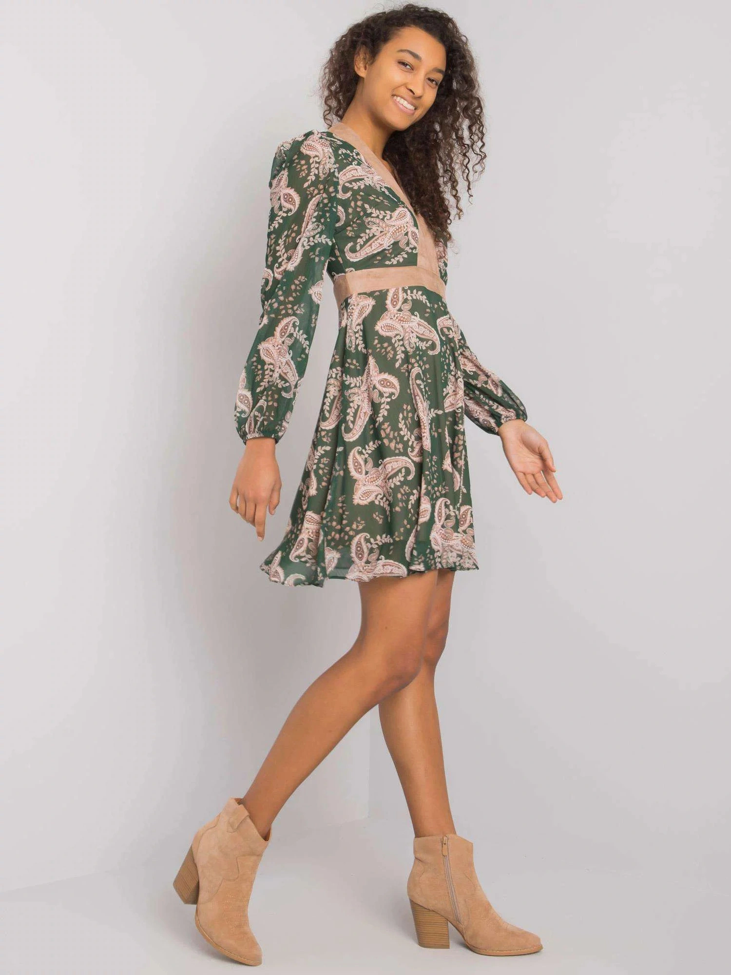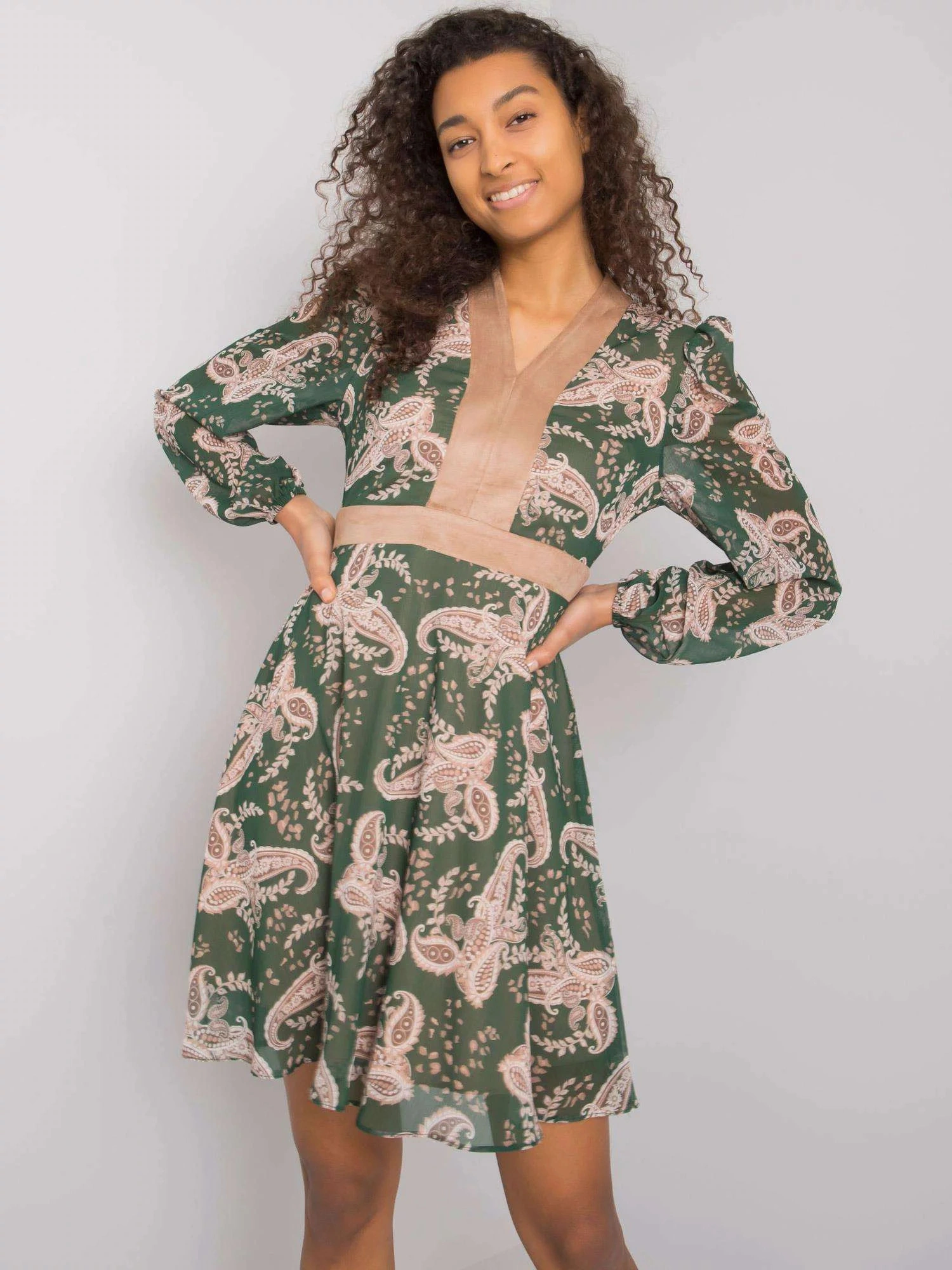 Wymiary sukienki w rozmiarze S mierzone na płasko: szerokość pod pachami - 44 cm, długość całkowita - 89 cm, długość rękawa - 61 cm