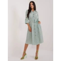 Damska długa letnia sukienka z kołnierzykiem, zapięcie na guziki, długie rękawy.