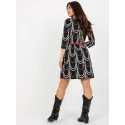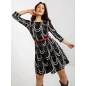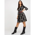 Czarno-biała damska sukienka koktajlowa z rękawem 3/4.