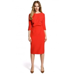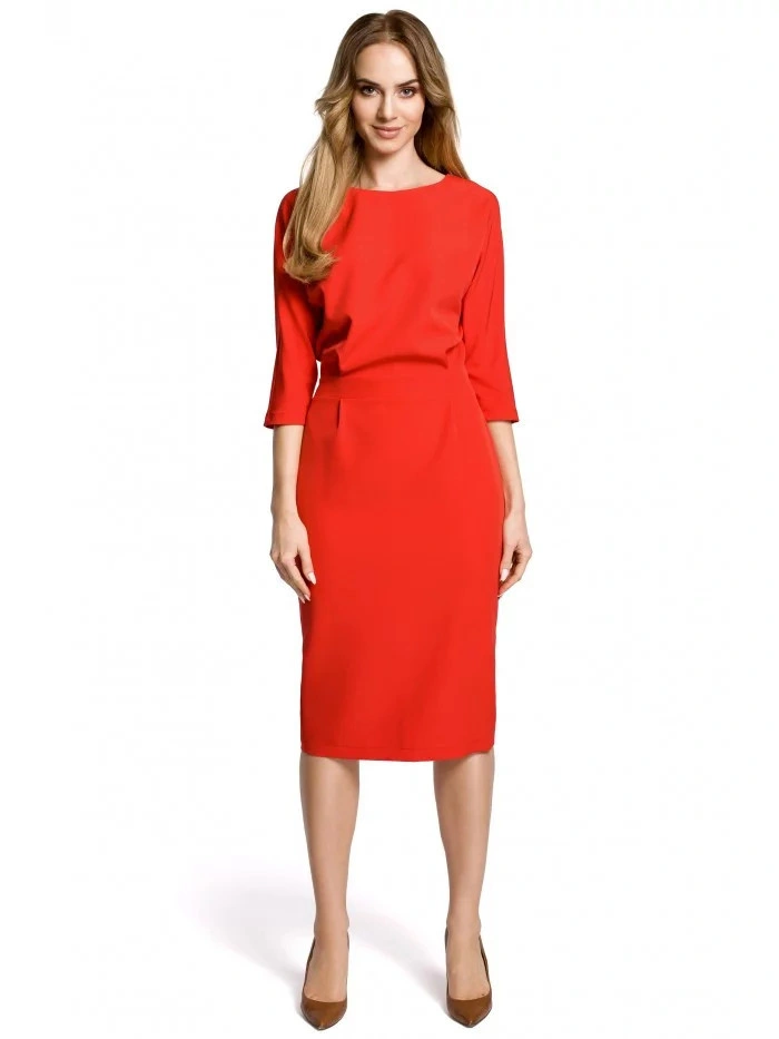Luźny top z wąskimi rękawami kontrastuje z klasyczną ołówkową spódnicą.