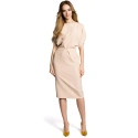 Elegancka sukienka damska z delikatnym paskiem, krótkimi rękawami i dekoltem w kształcie litery V z
