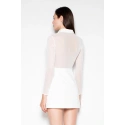 Elegancka sukienka żakietowa z ozdobnymi guzikami. Rękawy i tył sukienki aż do talii wykonane z przezroczystej siateczki. Sukienka ma długie rękawy i charakterystyczny kołnierzyk.