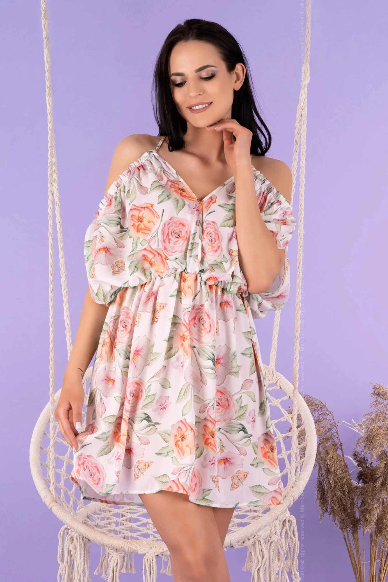 Sukienka damska TW SK BI 1100.45 jasny beż z kwiatami - FPrice