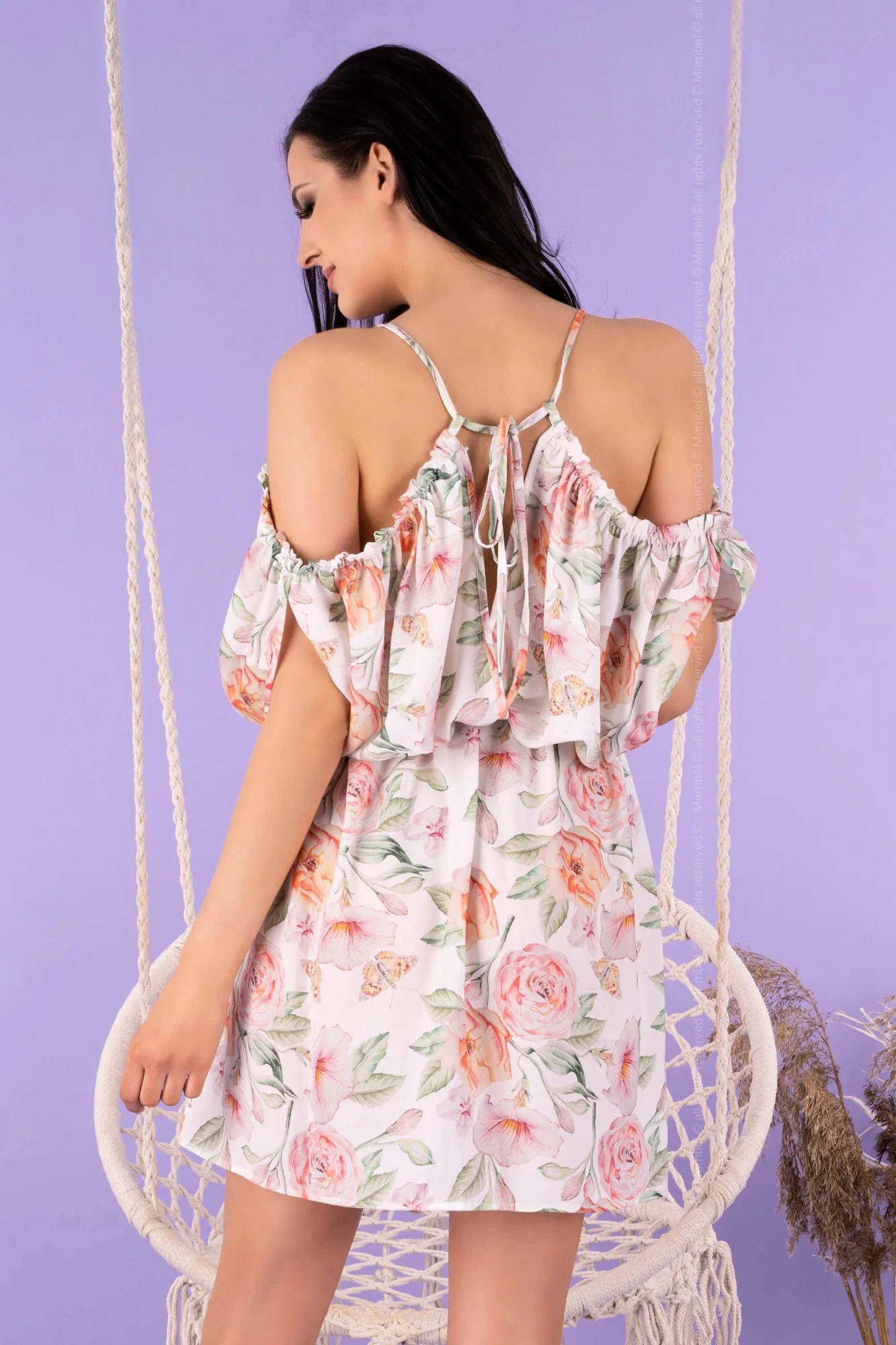 Mini sukienka z kwiatowym wzorem, dekoltem w łódkę i krótkimi rękawami. Bawełna 100% Rozmiar D