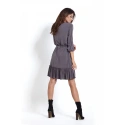 Sukienka o luźnym kroju z falbaną u dołu, która nadaje sukience nieco romantycznego charakteru. Talia jest podkreślona paskiem, który można swobodnie zawiązać. rękawy 3/4 wykończone drapowaniem i sznurkami. Okrągły dekolt w łezkę z możliwością zawiązania kokardy. Idealny wybór do noszenia na co dzień, ale także do pracy lub na spotkania z przyjaciółmi. Pasuje do szpilek, trampek, botków, a nawet czółenek.