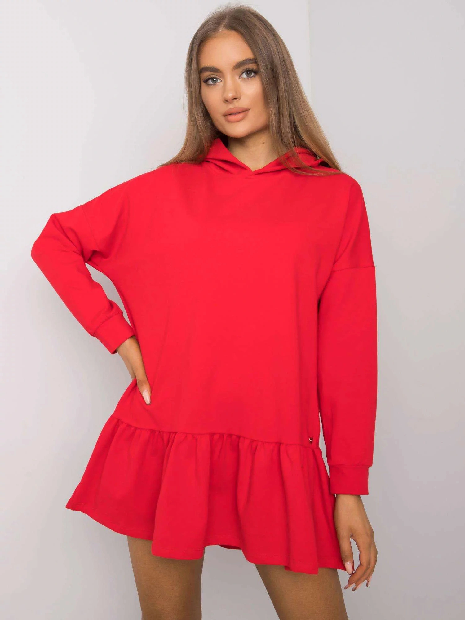 Wymiary sukienki w rozmiarze S/M mierzone na płasko: szerokość pod pachami - 58 cm, długość całkowita - 77 cm, długość rękawa - 60 cm