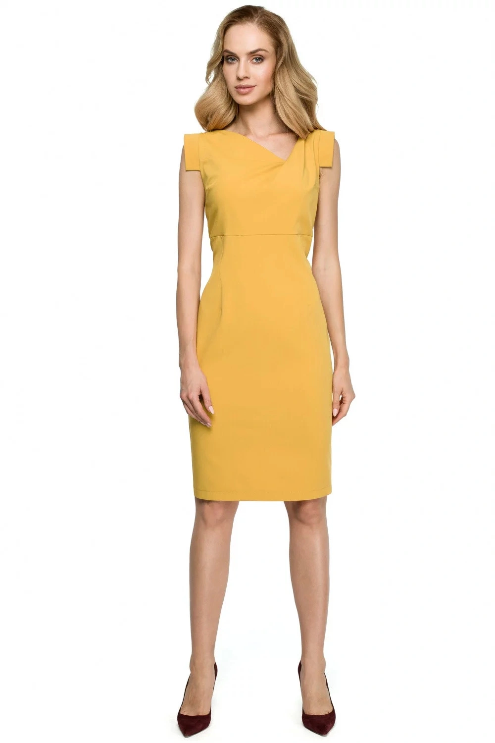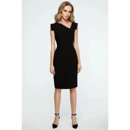 Delikatna i elegancka ołówkowa sukienka z podwyższoną talią i dekoltem w kształcie litery V z wycięc