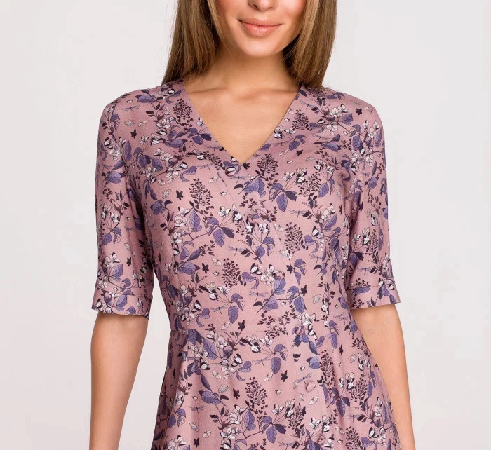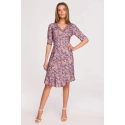 Idealny letni wygląd. Prosta sukienka z dekoltem w kształcie serca i asymetryczną falbaną. Piękny kwiatowy nadruk i stonowane kolory na przyjaznej dla skóry wiskozie. Sukienka jest bez podszewki.