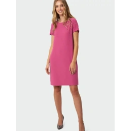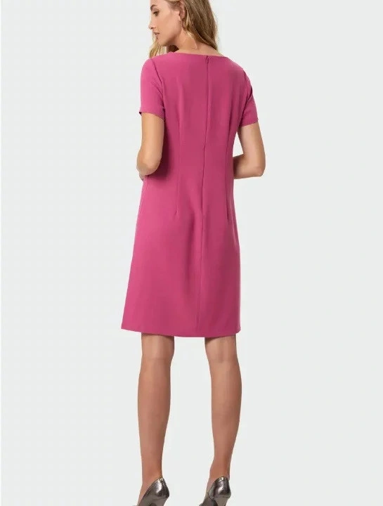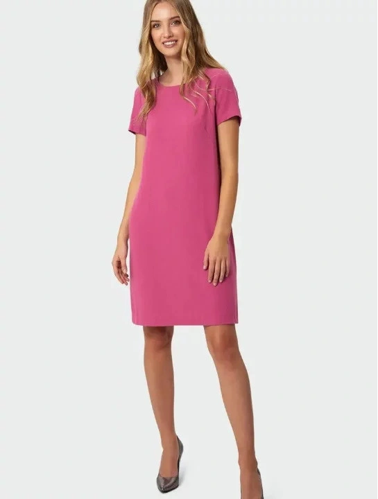 Damska sukienka do kolan, prosty krój, krótkie rękawy, okrągły dekolt.