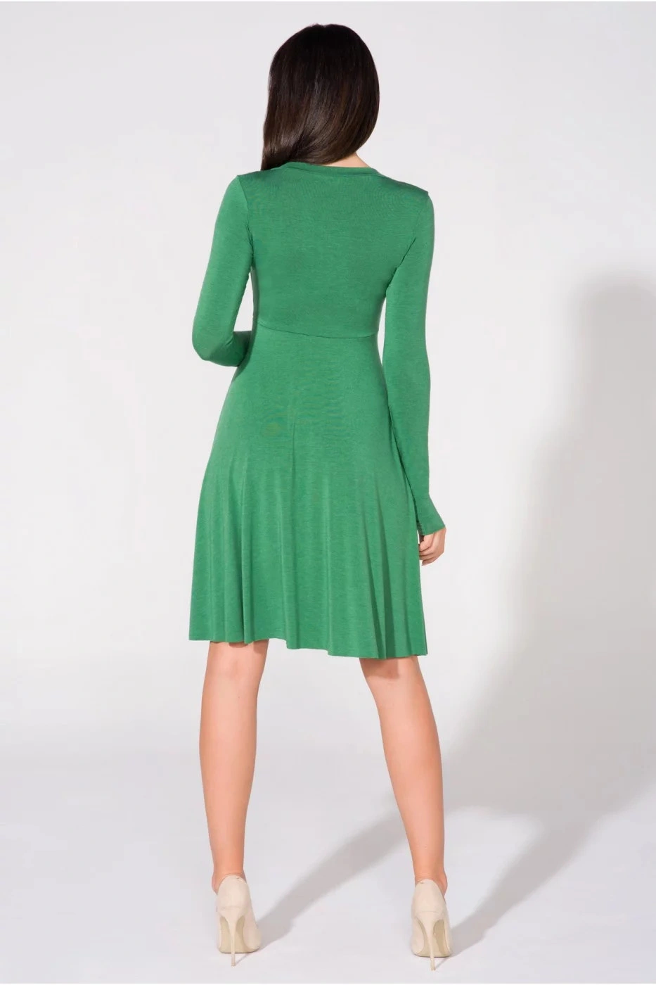 Elegancka sukienka z długim rękawem z wiskozowej dzianiny z subtelnym akcentem. Górna część sukienki