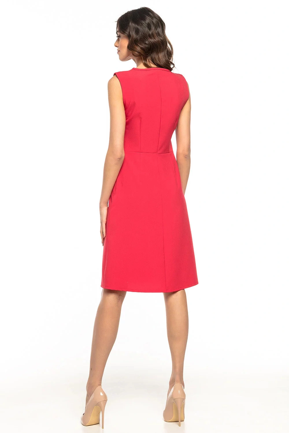 Damska czerwona sukienka wizytowa FOLD o średniej długości z paskiem w talii - Czerwona - Numoco