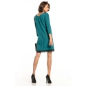 Prosta sukienka z dekoltem w kształcie serca, wykończona na dole koronką.