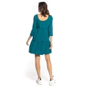 Mini sukienka z rękawami 3/4 i dekoltem w łódkę. Sukienka wykonana jest z falban o rozkloszowanym kroju. Konstrukcja z pewnością zakryje wszelkie niedoskonałości ciała i nie ogranicza ruchów. Głęboki dekolt z tyłu.