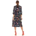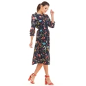 Prosta, ale elegancka sukienka z rękawami 3/4, elastyczną talią, delikatną falbanką przy dekolcie i wiązaniem. Idealny na co dzień i nie tylko.