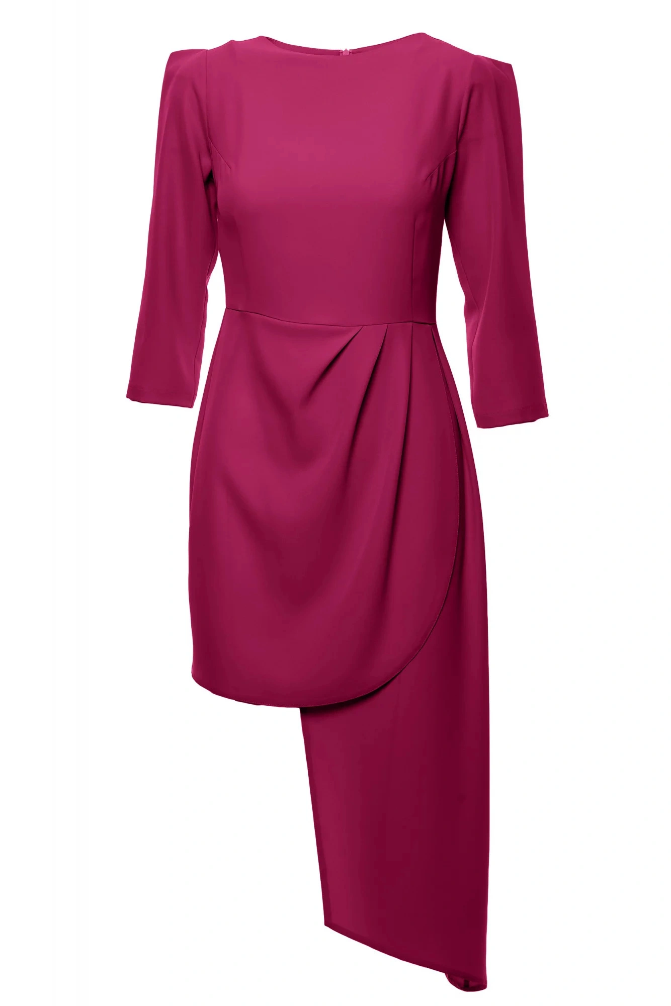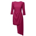 Damska sukienka o wyrafinowanym kroju, rękawy trzy czwarte, prosty dekolt.Kolor: śliwkowyWskazówki pielęgnacyjne: pranie: 30°C można prać w pralceKolekcja: Wiosna/Lato/JesieńPłeć: Kobieta
