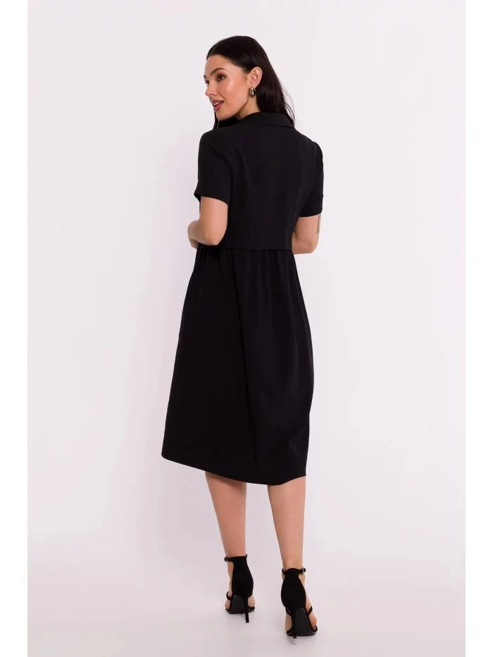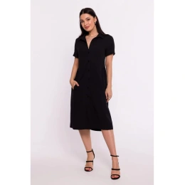 100% poliester SZCZEGÓŁY O PRODUKCIE: tkanina sukienka koszulowa sukienka z przodu zapięcie na guziki i kołnierzyk krótkie rękawy z przodu kieszenie bez podszewki długość do kolan nasza modelka ma 164 cm wzrostu i nosi rozmiar S zaprojektowany i wyprodukowany w Polsce