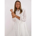 Damska sukienka koszulowa z przezroczystego tiulu, zapinana na guziki z białym kwiatowym nadrukiem, długie rękawy z gumką, na podszewce.