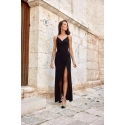 Damska sukienka wizytowa, długa, bez ramiączek. Zamek błyskawiczny z tyłu. Tkanina pięknie się mieni.