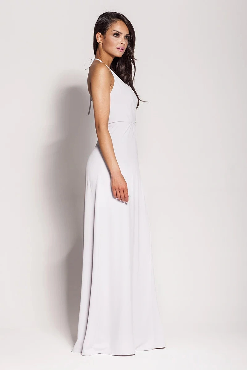 OCH BELLA Biała sukienka z dłuższym tyłem. akcesoria: regulowane paski na ramię skład tkaniny: 100%