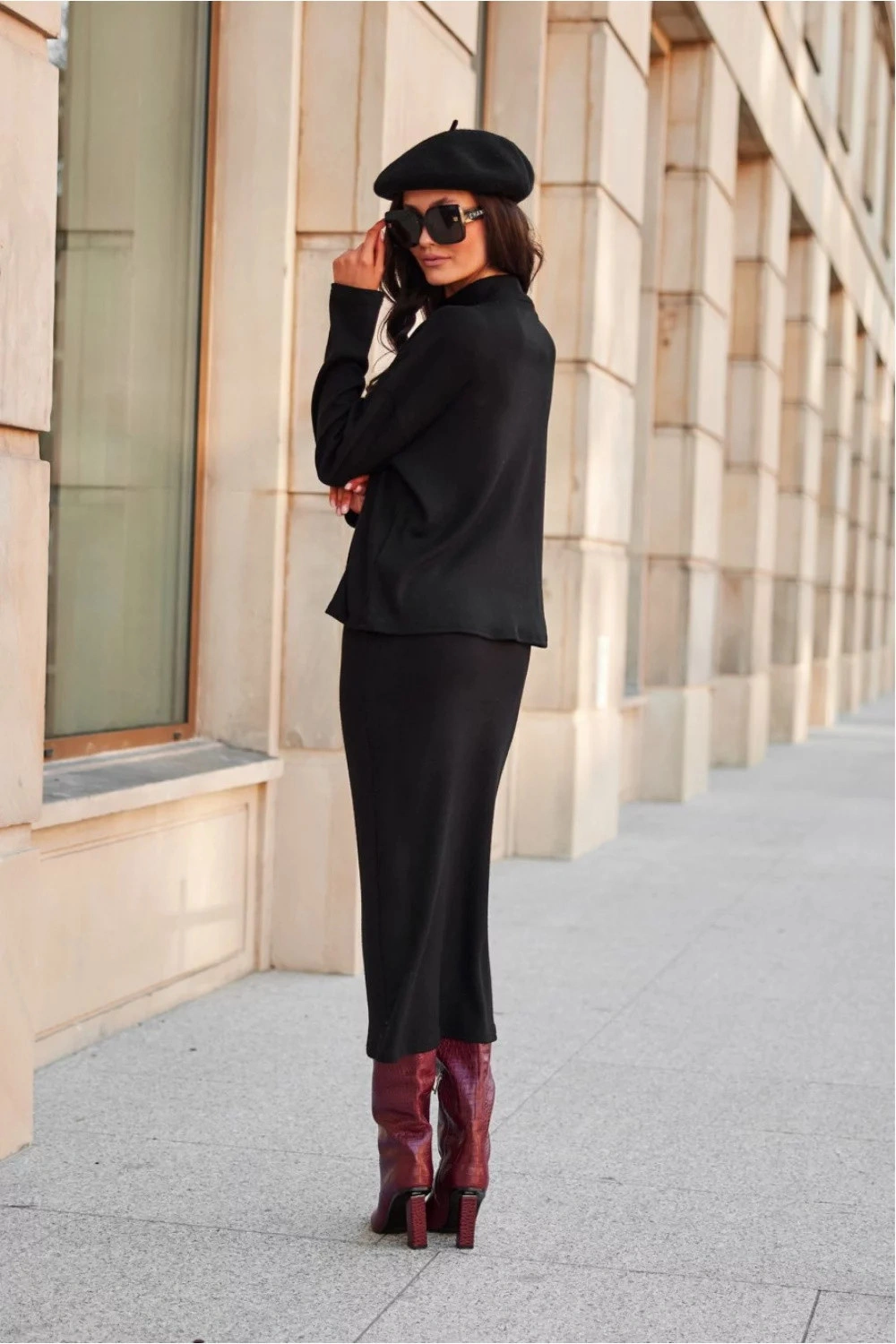 Spódnica Carmen została uszyta z ciepłej dzianiny, która jest elastyczna i dopasowuje się do sylwetki. Prosty fason trąbki otula figurę i pozwala na stworzenie eleganckiej stylizacji. W połączeniu z bluzką Lydia spódnica tworzy stylowy total look, idealny na jesienną i zimową pogodę. Spódnica o długości midi chroni przed chłodem, jednocześnie subtelnie podkreślając kobiece nogi. W pasie wszyto elastyczny pasek, który pozwala na dopasowanie i podkreślenie talii. Spódnica Carmen pozwala na stworzenie garderoby kapsułowej dzięki prostemu krojowi, który pasuje do wielu różnych stylizacji. Spódnica będzie świetnie wyglądać zarówno w codziennych, jak i eleganckich stylizacjach, w zależności od doboru dodatków. Produkt wyprodukowany i uszyty w Polsce.