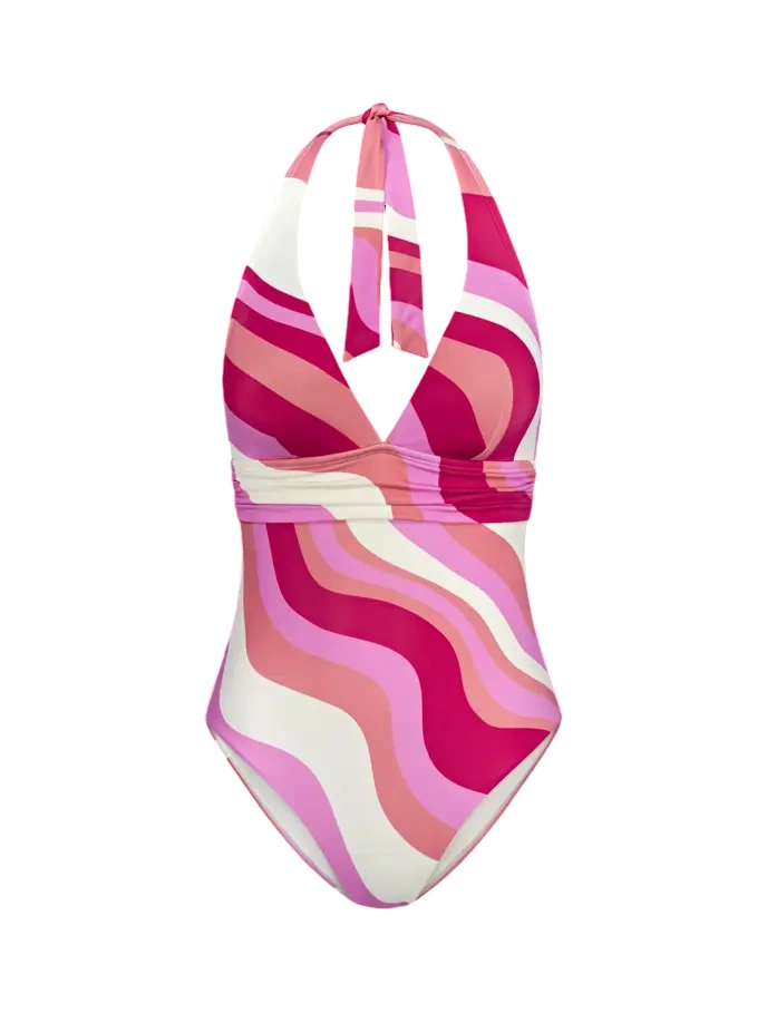 Hravý příval barev. V retro střihu, který bude lichotit vaší postavě. V těchhle plavkách s výstřihem ve stylu plunge uděláte skvělý dojem.